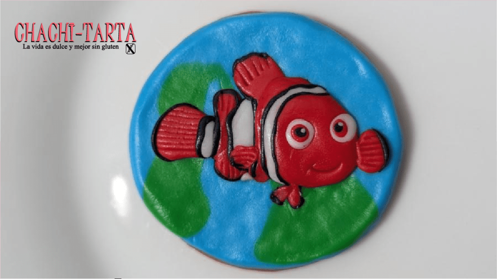 Para la decoración he utilizado fondant de azúcar de color blanco y colorantes comestibles en gel. Hoy en día hay muchas marcas de fondant y en su mayoría casi todas son libres de gluten, no obstante hay que mirar etiquetas por si acaso.