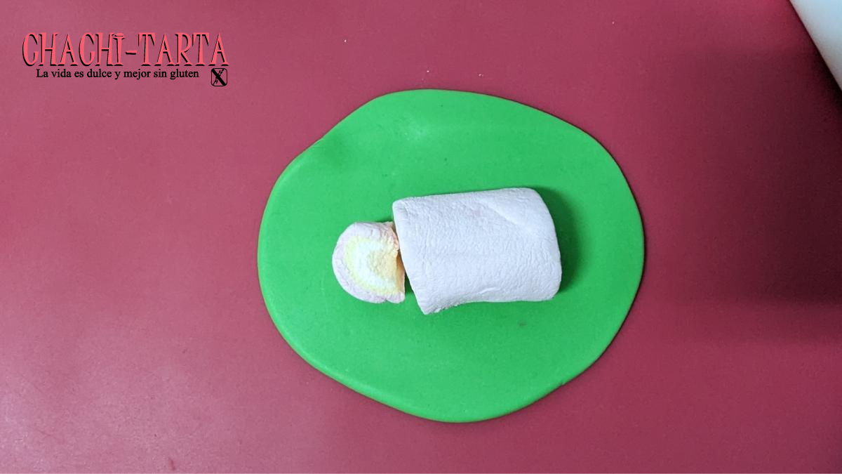 Pensando las cosas mejor, al final acabé utilizando nubes y me resultó todavía mejor, pues aportó menos peso y más consistencia, de esto que si se te espachurra un poco al moldear, la misma flexibilidad de la nube por dentro vuelve a poner todo en su sitio 😀 no pudo ser mejor acierto!