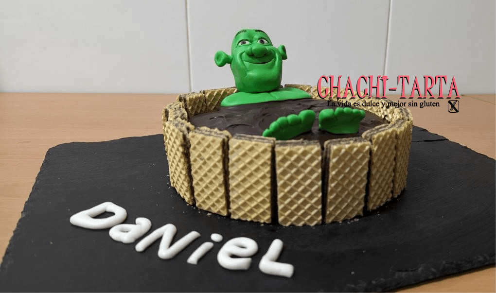 Y se llegó el día!!, por fin hemos celebrado el cumple oficial de Dani, 7 añitos llenos de emociones, aventuras y de poner todo patas arriba!!… la tarta está inspirada en otro de sus personajes favoritos del momento: Shrek!… por supuesto libre de gluten.