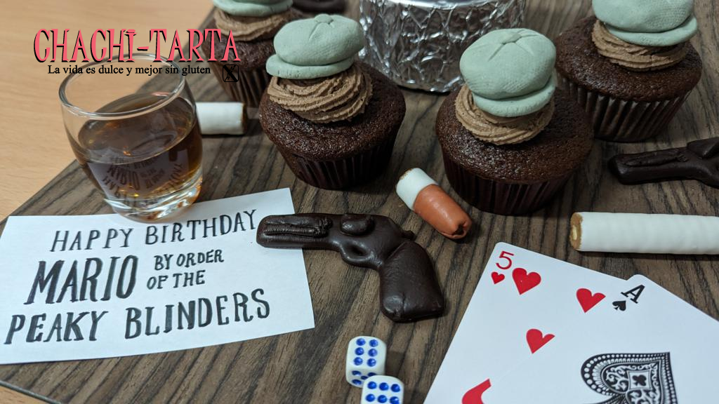 Esta semana celebramos el cumpleaños de mi marido y para felicitarle como tiene que ser, elaboramos estos cupcakes de chocolate con temática de la serie «Peaky Blinders», que le hizo revivir buenos momentos 😄 como buen fan y que hoy quiero compartir.