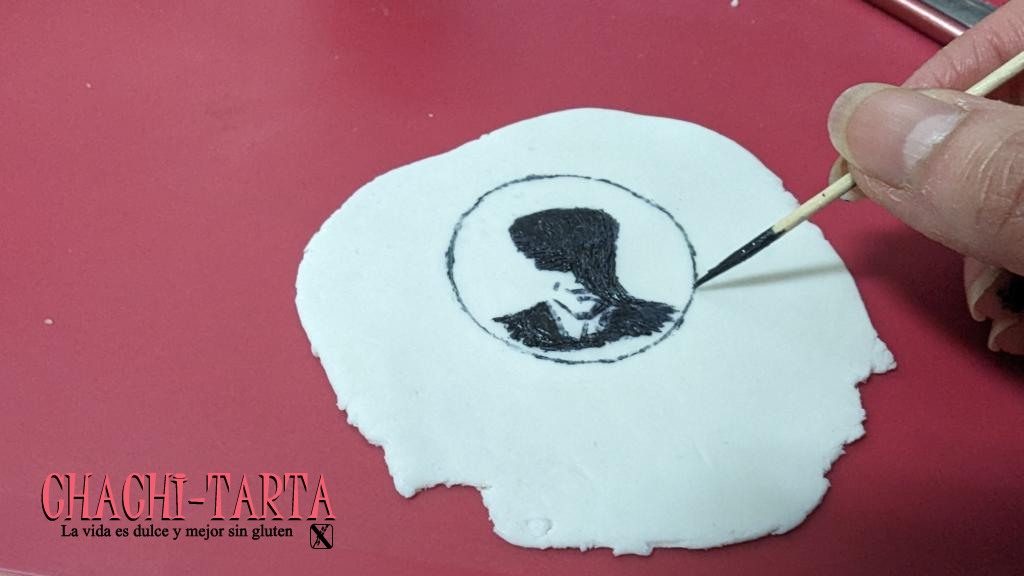 Bien, para las boinas use chocolate plástico blanco, añadí un poquito de colorante en gel color negro (muy poco) para que tuviese tonalidad gris. Hay colorantes especiales para chocolate, pero bueno… creo que no ha quedado mal.