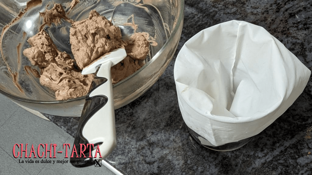 Mete la crema dentro de una manga pastelera con boquilla rizada, yo suelo siempre hacer el truco del vaso, que consiste en meter la manga vacía dentro de un vaso y luego con una espátula la voy rellenando así me resulta mas fácil y menos desastre 😙