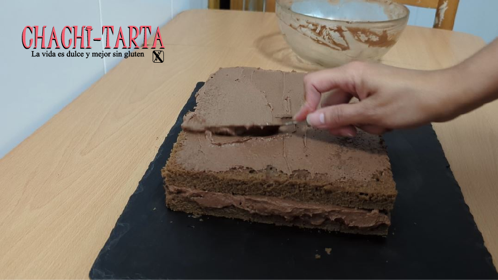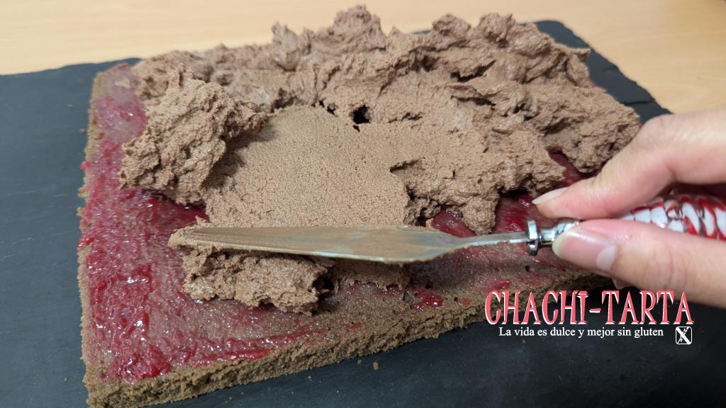 El bizcocho es de chocolate, por supuesto libre de gluten, y la crema del relleno es igual que la que preparé para los pastelillos de frambuesa con chococolate, porque gustaron tanto que quedamos con muchas ganas de repetir 🤤😛🍫🍫🍫