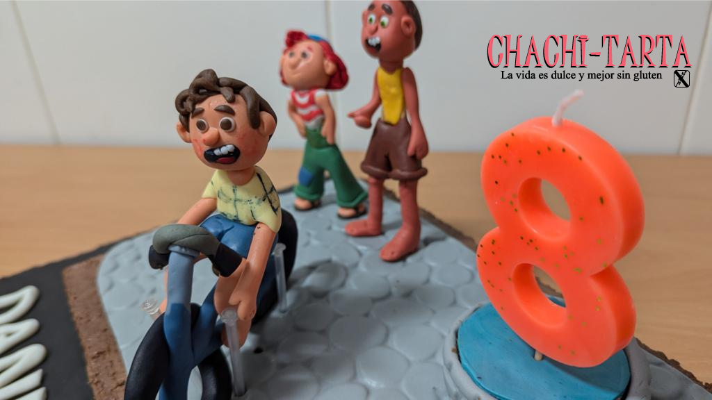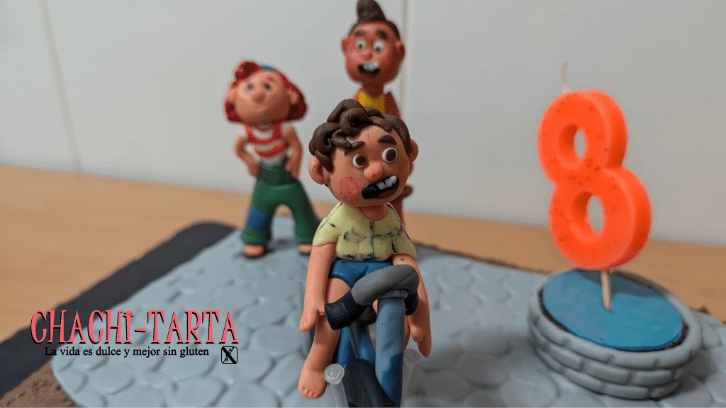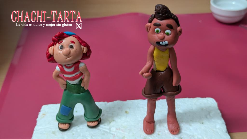 Aunque Luca es el personaje principal, la historia no sería la misma sin la compañía de sus amigos Giulia y Alberto. Entre ambos personajes tuve que pintar muchos trocitos de fondant de diversos colores y tonalidades, pero sobre todo mirar repetidas veces cada personaje en distintos ángulos para captar «su esencia» que creo haber hecho muy bien 😉 … o al menos eso me dijeron 😁😅
