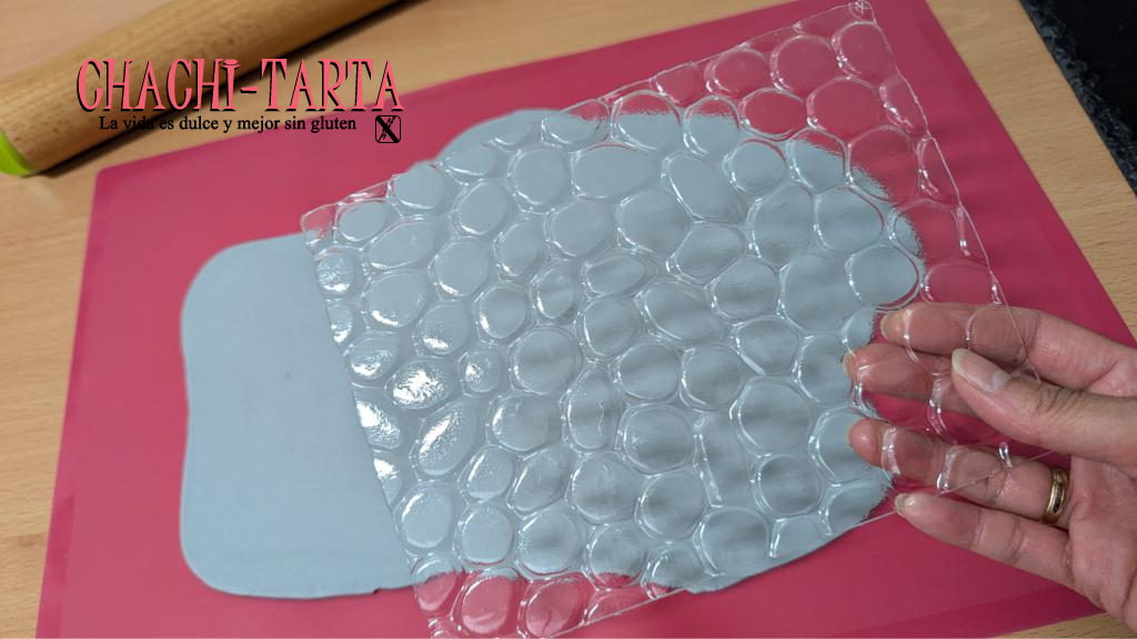 Una de las cosas que me moría por usar y que tenía por ahí guardadas, son estos texturizadores de fondant tan geniales que ves en la foto. Hace años que compré un set que trae varias texturas como de piedra, madera, ladrillo y alguna más.