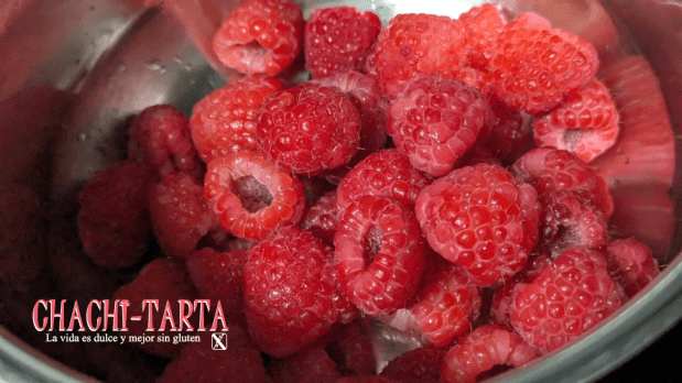 Preparamos una confitura de frambuesas, o frutos rojos (fresas, moras, frambuesas…) lo importante es obtener una textura lisa, brillante y con caída, y muy importante, que conserve un sabor ácido pero delicado y sobre todo de color muy muy rojo.