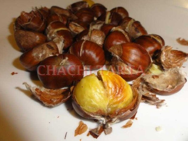 Este año hemos aprovechado muy bien la temporada de castañas, el fin de semana pasado volvimos a ir al monte a recoger y trajimos con nosotros unas cuantas que ayer puse a cocer para preparar otra deliciosa recetita que por supuesto es sin gluten.
