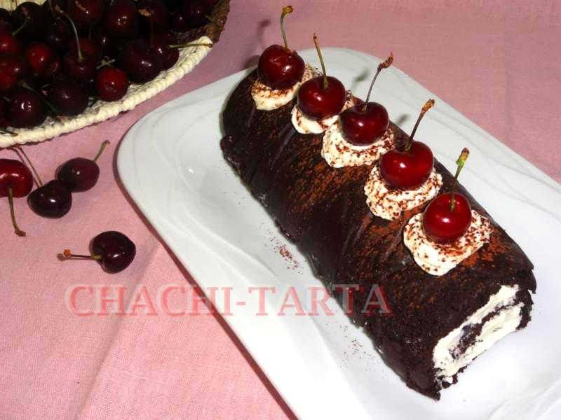 Sin ningún motivo en particular hoy decidí encender el horno y preparar un delicioso brazo gitano de chocolate con cerezas o como se suele llamar «selva negra», hecho con mucho cariño pero sobretodo con ingredientes libres de gluten 🙂