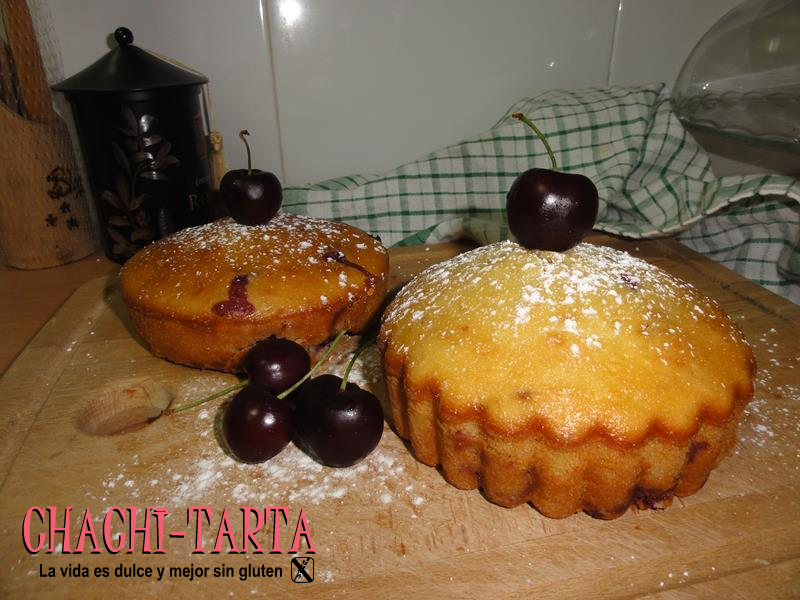 En temporada de cerezas hay que aprovechar, y aunque al natural están mejor que de ninguna otra forma, hoy he querido variar un poco preparando unos bizcochitos sin gluten para desayuno; hacía tanto tiempo que no encendía el horno que me ha dado hasta emoción jeje así que por eso te comparto aquí la receta.