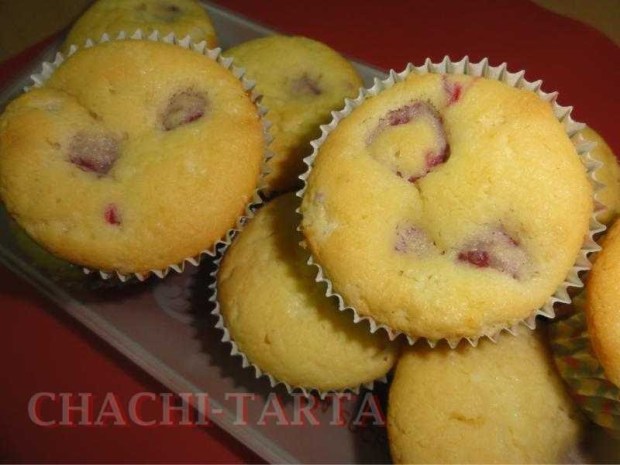 Magdalenas de chocolate blanco y frambuesas (sin gluten)