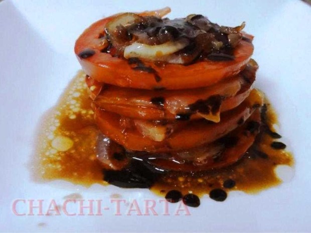 De pronto tuve un antojo repentino por algo sano 😛 y recordé esta tapa de tomate con salmón ahumado, idea que me quedó guardada en la lista de deseos después de ir a comer a un restaurante en plan tapeo, como me gustó mucho he intentado prepararla hoy y este ha sido el resultado.