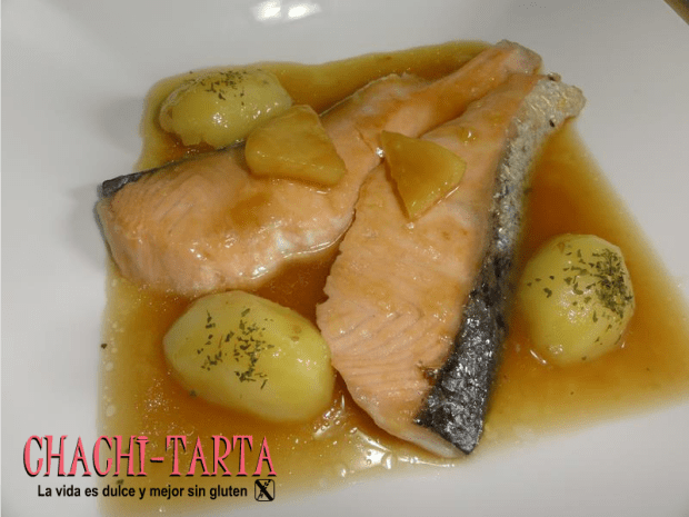 Ya venía tocando receta saladita, bueno, aunque con un toque de dulzor 😉 … ahora que aún estamos en temporada de salmón quería aprovechar a compartiros una receta muy buena y facilona, de esas para preparar cuando tienes invitados y te apetece hacer algo diferente y sin complicarte mucho la vida, hoy tenemos salmón a la sidra, por supuesto libre de gluten.